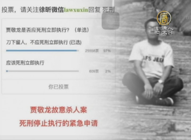 大陸近百位民眾發起連署,呼籲刀下留人。在微信上的一份民調,2萬多名投票的網友中,97%呼籲留他一命。