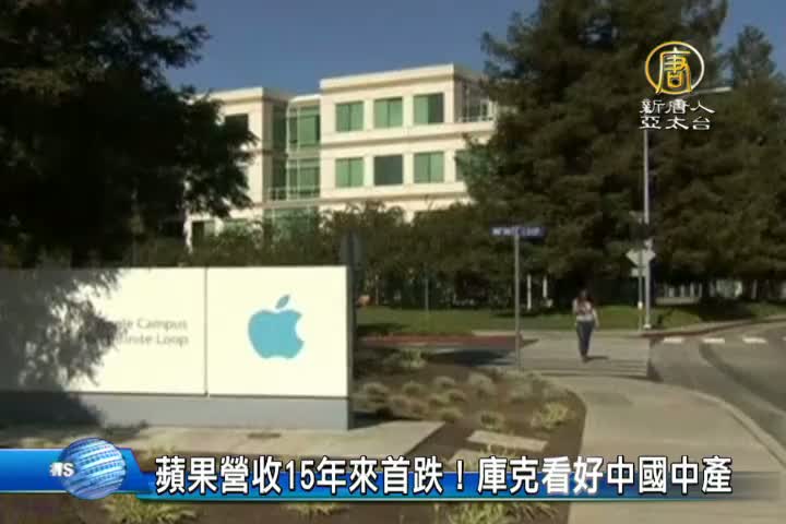 【新唐人亞太台 2016 年 10 月 26 日訊】美國蘋果公司今天公布上季財報,受iPhone銷售下滑拖累,上季獲利暴跌19%,來到90億美元,而上季營收,從去年同期的515億美元下滑至469億美元,是15年來,首次出現營收、獲利,雙雙下跌。儘管蘋果在大中華區的營收下滑三成,執行長庫克仍看好中國的中產階級持續壯大,未來會繼續專注在中國。