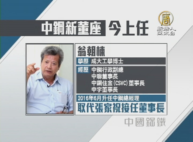 【新唐人亞太台 2016 年 10 月 26 日訊】來關心中鋼人事異動,受經濟部派令,新任董事長翁朝棟、總經理劉季剛,下午完成推舉與同意程序,外界看好翁、劉共治的新中鋼上路,將帶動中鋼新的經濟引擎。今天上任的中鋼董事長翁朝棟是成大工學博士,在中鋼從基層管理師做起,歷任行政副總、中聯董事長、中鋼住金(CSVC)董事長、中宇董事長,今年6月升任中鋼總經理,4個月後取代張家祝,接任董事長,中鋼高層重新回到內升體制。