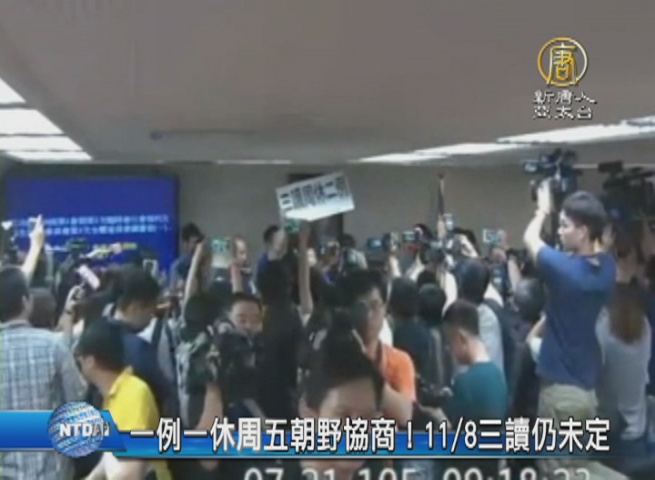 【新唐人亞太台 2016 年 10 月 27 日訊】好,立法院今天在衝突中,確認10月5日初審通過「一例一休」勞基法修正草案的議事錄,民進黨團總召柯建銘表示,會希望盡快完成三讀;最快,一例一休案會在11月8日院會三讀,如果通過,11月12日國父誕辰紀念日、12月25日行憲紀念日,勞工可能放不到假,而剛剛從立院收到的消息,明天上午要再進行黨團協商。