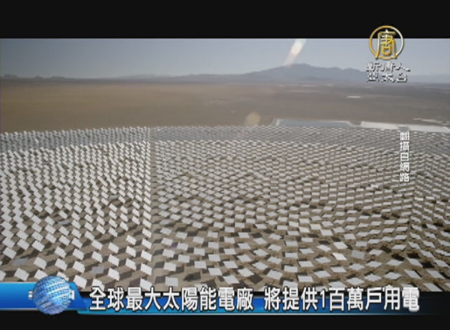 【新唐人亞太台 2016 年 10 月 29 日訊】再來看到,為了滿足能源使用的需求量,美國加州能源公司近期更宣布了一項計畫,要打造全球最大的太陽能電廠,不僅電廠完全零排放,也不需要天然氣或石油作後備,就能全天24小時供應100萬戶的民生用電。