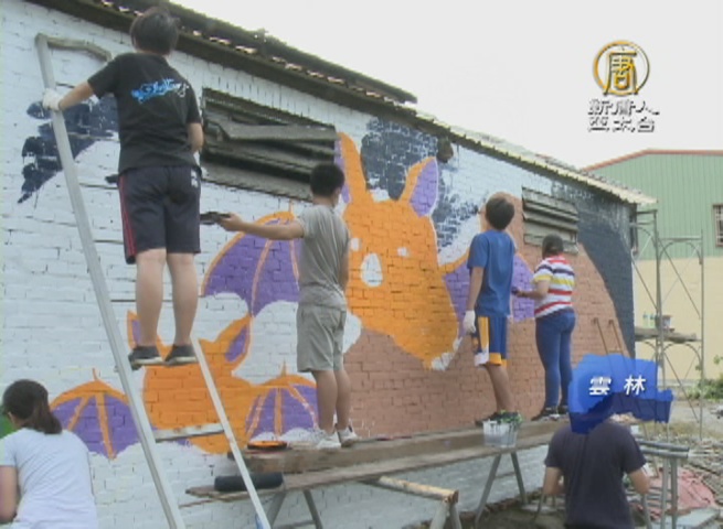 【新唐人亞太台 2016 年 10 月 30 日訊】位在雲林全台唯一的「黃金蝙蝠館」,為了加深民眾保育的理念,與雲林科技大學數媒系合作,不僅製作一部生動有趣的動畫,還號召40位同學在11公尺寬的牆面上,彩繪Q版的黃金蝙蝠。