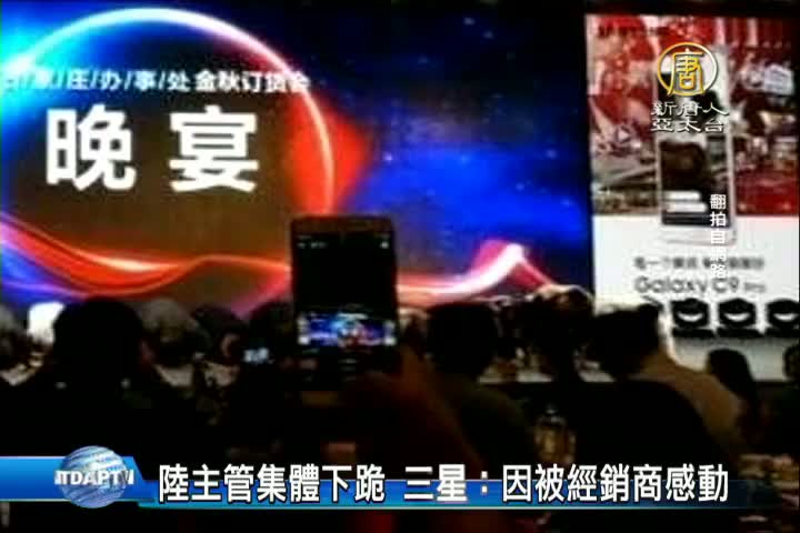 【新唐人亞太台 2016 年 10 月 31 日訊】南韓三星Note7手機爆燃事件後,昨天,有中國網友爆料,三星近日在河北省石家莊市舉辦訂貨會,為拜託經銷商多訂貨,中國區高級主管竟集體下跪。對此,三星公關回應表示,公司並沒有強迫中國員工行韓式下跪大禮,事件的緣由是,在Note7爆炸事件發生後,三星的經銷商依然下了很多三星其他產品訂單,出於感動和尊敬,三星高層才向經銷商們下跪行大禮,中國高層同樣很感動,於是也下跪行禮。