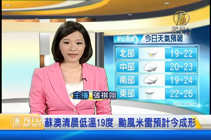 【新唐人亞太台 2016 年 11 月 02 日訊】歡迎您收看11月2日的早安新唐人,我是張祺翎。先來帶您關心今天的天氣情況。 因為東北季風報到,氣溫驟降,昨天,全台平地 有八個測站 測到今年入秋以來最低溫,今天清晨,蘇澳低溫來到19度,而今天白天,桃園以北和宜蘭高溫預計只有22度,這樣的濕冷天氣,會持續到明天星期四。另外,今年第23號颱風「米雷」,預計會在今天成形,不過因為距離遠,預計本週不會影響台灣。帶您一起來看到國際媒體重要訊息。