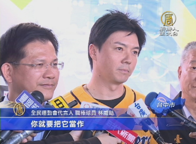 第九屆全民運動會,即將開跑,承辦單位找來中信兄弟隊長林威助擔任代言人,和市長林佳龍,一起為選手加油打氣。