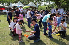 嘉義縣政府今天(5日)在中正大學舉辦「民雄草地野餐日」活動,吸引許多爸爸媽媽帶著小朋友前來參加。(圖/嘉義縣政府提供)