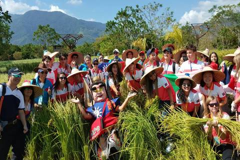 由於池上正值稻子收割的季節,暑假時曾參與耕耘插秧夏令營的民眾,也攜家帶眷前來體驗。(圖/台東縣政府提供)