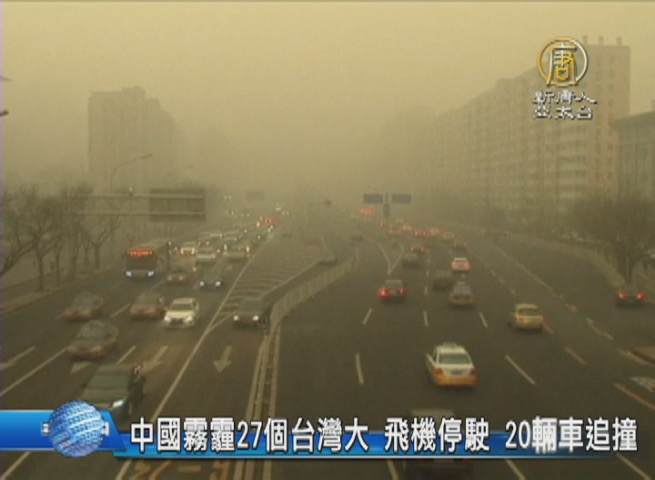中國霧霾27個台灣大 飛機停駛 20輛車追撞