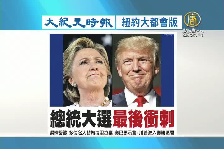 【新唐人亞太台 2016 年 11 月 07 日訊】首先來看到美國華盛頓郵報報導:美國共和黨總統候選人川普最後衝刺,把握新機會達到270張選舉人票。