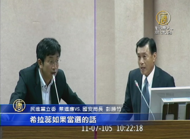 民進黨立委 蔡適應VS.國安局長 彭勝竹:「這兩人當選,對台美的軍購會不會延緩,或是怎麼樣?」「希拉蕊如果當選,她會持續現行美方對台政策,基調不會改變。」「那川普呢?」「川普的話就非常難說,因為他強調的是,對美國的利益為主。」