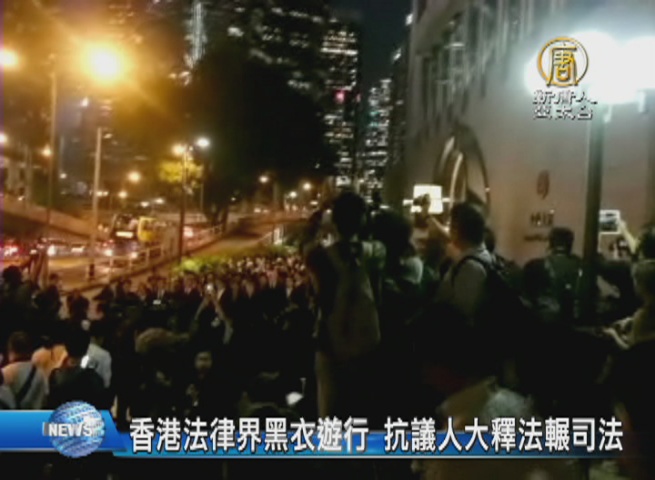 【新唐人亞太台 2016 年 11 月 08 日訊】焦點話題來看到,香港抗議中共人大釋法,法律界發起反釋法黑衣遊行,傍晚約有五百人穿著黑衣從高等法院,一語不發地走到中環的終審法院, 多位法律界重量級人士都到場參與,民主黨創黨主席李柱銘認為,人大無權解釋香港的法律,這就像是用坦克輾過香港的司法制度,發起遊行的香港立法會議員郭榮鏗也說,中共人大釋法對香港法治及一國兩制造成非常大的破壞,黑衣遊行是要向中央及國際社會表明,「釋法不是香港司法制度的常態。」