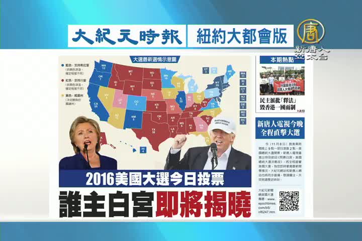 【新唐人亞太台 2016 年 11 月 09 日訊】首先來看到美國華盛頓郵報報導:美國大選日,激烈選戰到達終點。