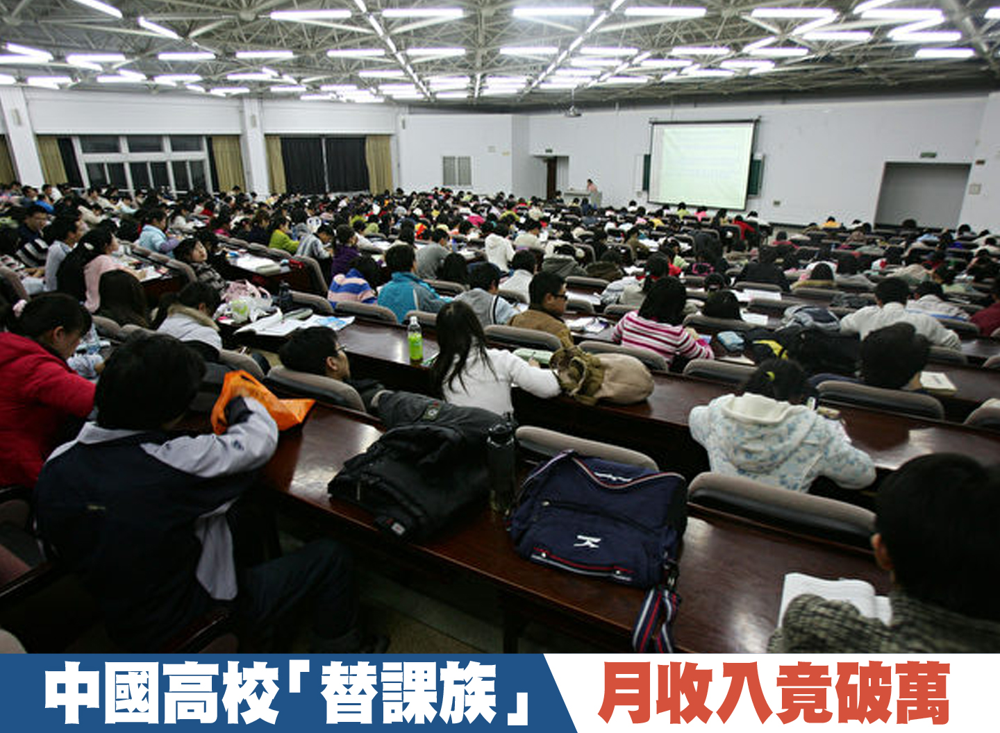 伴隨著中國大陸高校大學生逃課人數越來越多,大學校園裡出現了諸多「替課族」,甚至還有中介公司牽線安排資源從中抽佣。替課學生稱,每次課可賺到25元人民幣,有時一個月可賺到3,000元人民幣,約台幣1萬4千元。