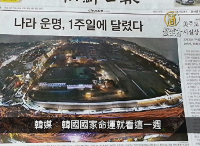 南韓「朝鮮日報」14日在頭版頭條以「國家命運就看這一週」為標題,配上夜間鳥瞰光化門被燭光集會群眾包圍的照片,報導總統朴槿惠面臨的困局。而朴槿惠最快本週二或三,就會接受檢方的訊問。