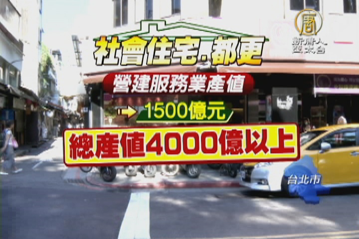 政府評估109年社會住宅,有四萬戶興建完成或開工,至於包租代管空屋也有40000戶,另外全台老舊公寓有15萬棟,超過100萬戶,其中人口密集的雙北市,就有超過10萬棟,如果能啟動都更,營建服務業產值超過1500億元,加上其他上下游產業,總產值在4000億元以上!
