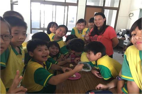 范太霞還特地準備越南傳統美食「鴨仔蛋」讓小朋友品嘗,運用異國美食搭配語言的教導,提升小朋友的學習興趣。(圖/嘉義縣新港國小提供)