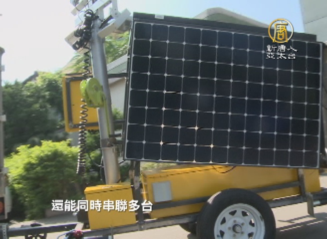 記者 李晶晶:「記者身旁的這一台,就是移動式多功能儲能車,透過太陽能板儲存電力,轉換到電池上面,必要的時候可以用來緊急照明,以及監控系統。」