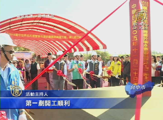 台中市長林佳龍和立委洪慈庸都來了,希望工程順順利利,2018年花博在台中,外埔園區最先動工,佔地14.32公頃的外埔永豐園區,總工程經費是12億5400萬,園區將以綠色自然人文呼應主軸,強調人和自然的互動,也要降低基地開發對環境的衝擊,強調台灣的花卉和水果科技,要和世界脈動連結。