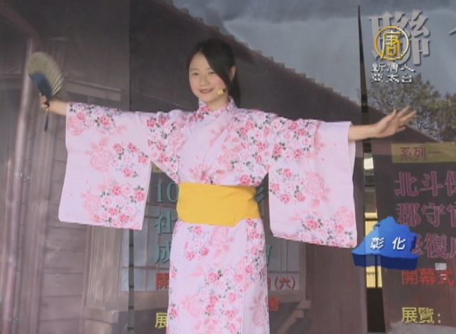手拿著扇子,和服女子隨著音樂翩然起舞,搭配日式建築之美,讓人覺得彷彿穿越到日治時空,其實這是彰化溪湖市中心,縣定古蹟北斗保甲事務所,及北斗郡守官舍的修繕落成典禮。