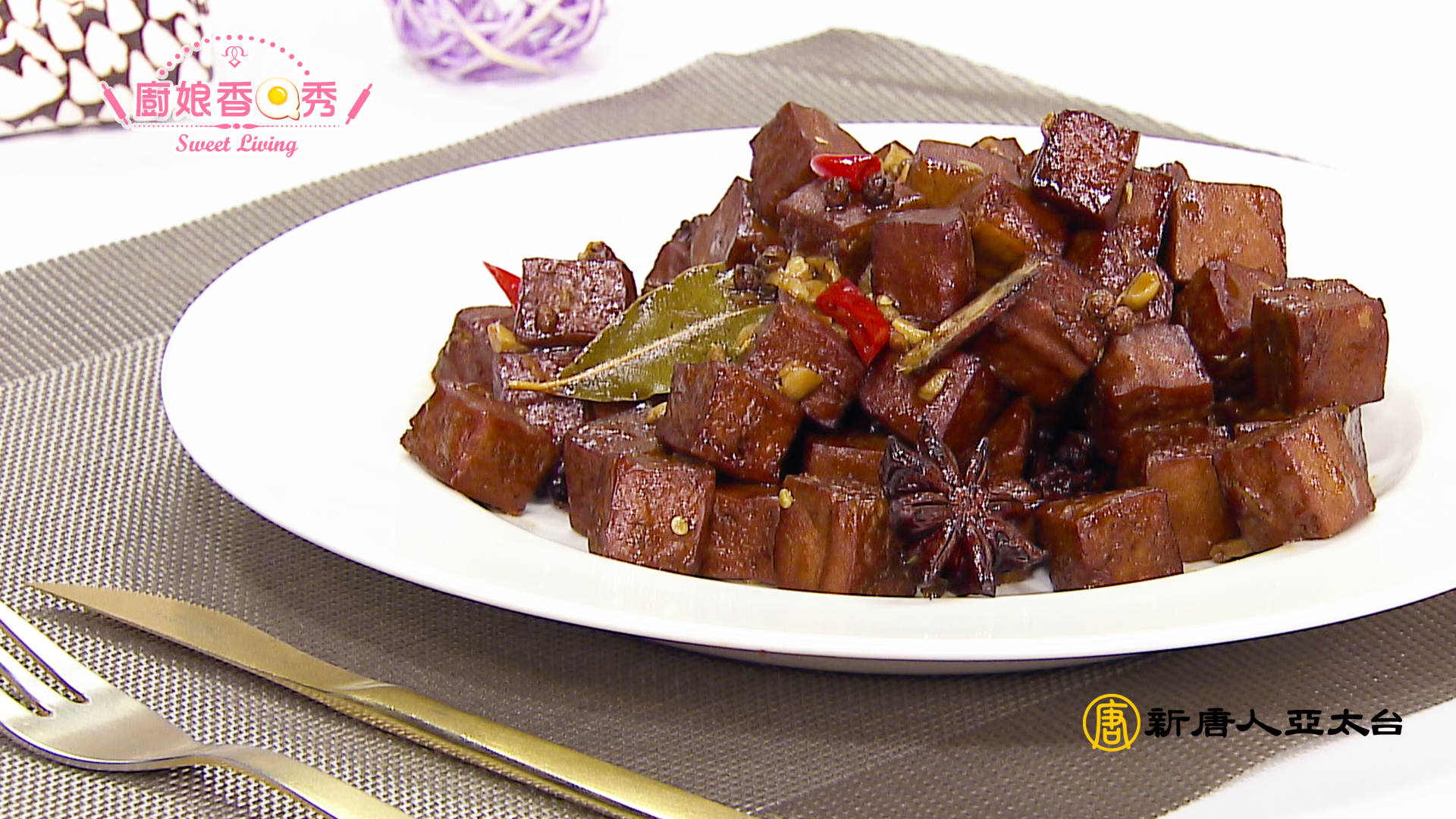 平常就可以方便料理的家常菜椒麻蜜豆乾/嫩雞燒豆腐,透過來賓郭懿儀(花媽)用輕鬆易懂的方式,從生活的角度分享美食與營養各方面的知識。郭懿儀(花媽)利用雞肉本身的油質,簡單快速煮出一盤全家都愛的嫩雞燒豆腐。
