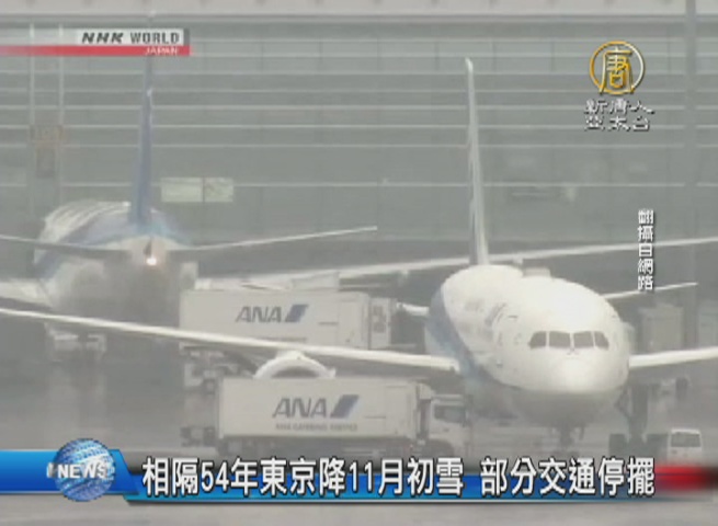 【新唐人亞太台 2016 年 11 月 24 日訊】日本東京在今天清晨降下了今年第一場雪,這也是睽違54年後,在11月份就降下初雪,而且時間越晚,雪會下得越大,東京最低溫也來到攝氏1度左右,造成部分交通停擺。包括JR東日本的青梅線與中央線,一度因為積雪太重將樹枝下壓影響列車行駛,西武、京王、新宿等各線,也都因為大雪而延遲發車。