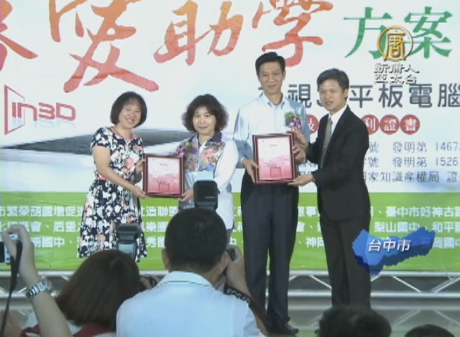 【新唐人亞太台 2016 年 11 月 24 日訊】為鼓勵清寒學生努力向學,有科技公司捐贈104台平板電腦,提供給台中市9個行政區的中低收入戶的優秀學生使用,台中市長夫人廖婉如表示,科技,是冰冷的物品,但捐贈的美意,卻溫暖人心。
