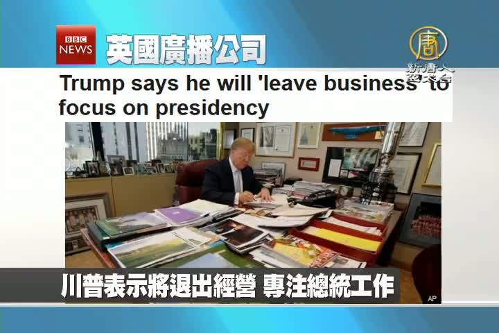【新唐人亞太台 2016 年 12 月 01 日訊】首先來看到美國紐約時報報導:美國下任總統川普表示,將退出集團事業,避免利益衝突。