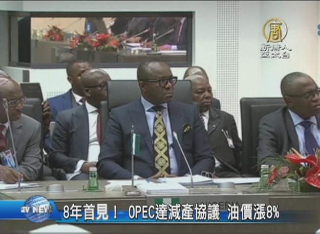 【新唐人亞太台 2016 年 12 月 01 日訊】再來看到,掌握全球4成原油供應的OPEC,石油輸出國家,昨夜宣布,達成8年來首見的減產協議,14個成員國同意將整體產量,減少每日120萬桶到每日3250萬桶,這個數量,相當於全球產量減少1%,協議將會在明年1月起生效。消息一度讓原油飆漲超過8%。