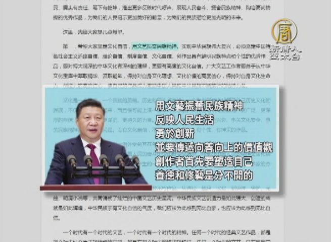 時事評論員 文昭:「現在文聯的會,習近平是把政治局常委都拖去一起開會,這個規格是前所未有的高,他現在把文藝的事情看的前所未有的重。為甚麼會這麼做呢?我理解呢,一個最主要的原因還是反映出來目前中共執政集團的一種焦慮不安的心態。」