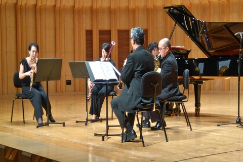【新唐人亞太台 2016 年 12 月 03 日訊】從鋼琴到木管再延伸到小提琴,在木管裡展現莫札特無窮的想像,小提琴呈現出巴爾托克民間快版音樂的流暢,法國號奇遠無比的浸透力,搭配小提琴優美動人的旋律,鋼琴悠揚的樂聲彷彿小溪般緩緩流出,再再體現布拉姆斯陰鬱哀傷美感,鋼琴木管五重奏、小提琴二重奏、法國號小提琴鋼琴三重奏,由北藝大教授王美齡策劃,與陳彥豪、謝宛臻、宋威德、陳奕秀、林士凱及梁艷共同演出的「北藝大教授室內樂II」音樂會,音樂家們紮實的演奏技術及絕佳的默契流瀉在樂章裡,這一夜,隨著動人的音符將情感流轉於經典作品中!