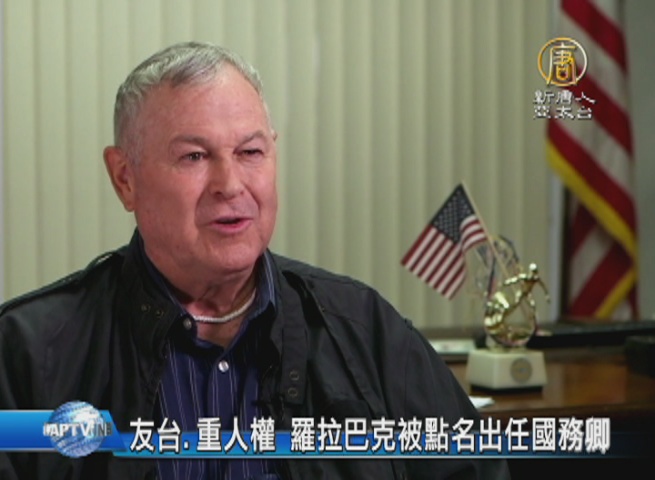 【新唐人亞太台 2016 年 12 月 06 日訊】再來看到,川普團隊的國務卿人選,備受矚目;外媒報導,現在最有可能出任國務卿的人選是加州眾議員羅拉巴克,而羅拉巴克昨天也接受外媒訪問,談川蔡熱線。