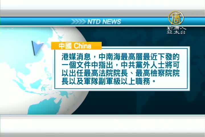 港媒消息,中南海最高層最近下發的一個文件中指出,中共黨外人士將可以出任最高法院院長、最高檢察院院長以及軍隊副軍級以上職務。