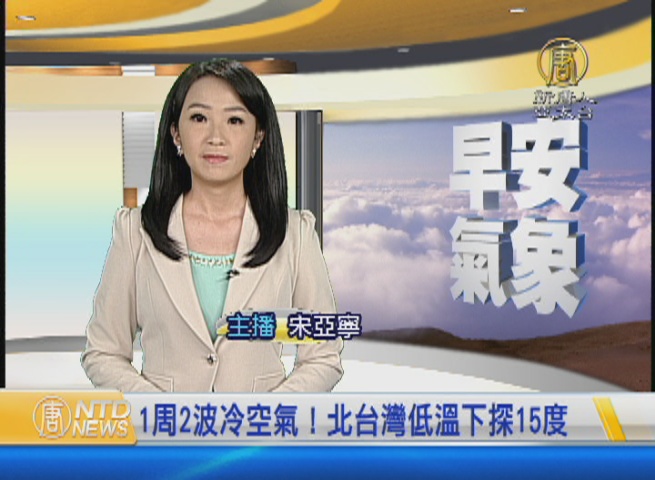 【新唐人亞太台 2016 年 12 月 07 日訊】歡迎您收看12月7日的早安新唐人,我是宋亞寧。先來帶您關心今天的天氣情況。越來越有冬天的感覺了,氣象局說,未來一周有2波東北季風 相繼影響台灣。 今天台南以北和宜花地區一帶低溫下探15度,明天短暫回溫空檔後,星期五,又有一波冷空氣報到,提醒觀眾朋友們留意。帶您一起來看到國際媒體重要訊息。