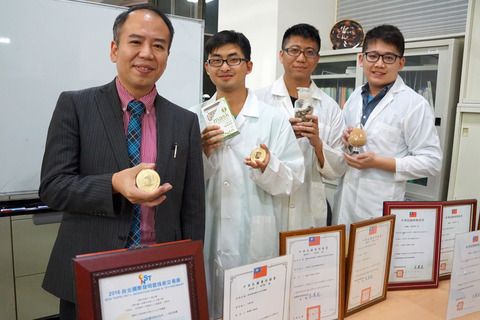 另一團體仍由謝昌衛院長帶領學生張兆凱、許世賢的「寡醣肽之美白用途、其製造方法及包含其之美白配方」,菇蕈類都含有多醣體,但使用一般技術萃取出的多醣體分子過大,塗抹在皮膚表面較不易吸收,將雲芝多醣肽透過酵素工程,水解為分子更小的雲芝寡醣肽,讓肌膚更好吸收,與知名美妝品牌森田生醫產學合作的成果,榮獲2016第七屆IIIC國際創新發明競賽金牌,15日前往台北授獎。
