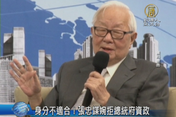 【新唐人亞太台 2016 年 12 月 09 日訊】再來看到,總統府上個月宣布,邀請台積電董事長張忠謀等人擔任總統府資政,不過,台積電今天表示,張忠謀已經在11月22日婉拒此事,張忠謀指出,因為台積電是國際性的企業,外資將近80%,客戶與市場也有70%到80%在海外,股東結構更是多元,以這樣的公司負責人身分,不適合出任總統府資政。稍早,總統府回應,表示尊重。