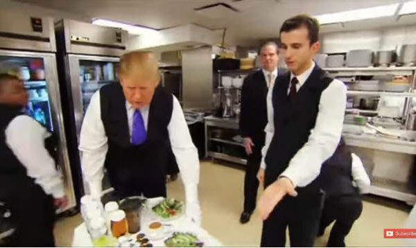 最近流傳出來的一段2011年的視頻中,川普在其位於芝加哥的一家酒店內當了一天的服務員,以體驗員工工作時可能會遇到的各種困難和考驗,從中可以看到川普在很細小的事情上都會親歷親為。