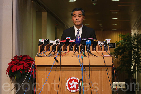 香港特首梁振英11日突然緊急通知召開記者會,宣布因家庭原因不爭取連任。(大紀元)