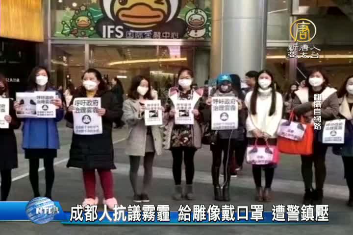 成都人抗議霧霾 給雕像戴口罩 遭警鎮壓