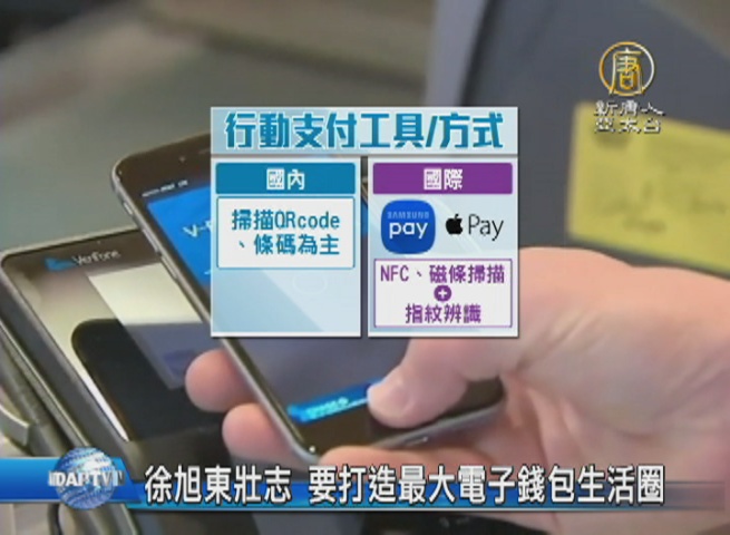【新唐人亞太台 2016 年 12 月 13 日訊】趁著國際支付工具,Apple Pay、Samsung Pay還沒正式登台,國內業者積極搶佔行動支付市場,業者運用集團資源,整合旗下11家關係企業,以及9大國際廠商,目標打造國內最大電子錢包生活圈。