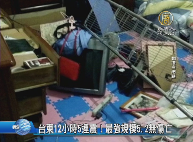 【新唐人亞太台 2016 年 12 月 16 日訊】地牛又翻身,台東縣近海今天凌晨4點5分,發生芮氏規模4.5地震,震央在台東縣政府東北方15.6公里,震源深度16公里。而在昨晚10點14分,台東就發生了規模5.2地震,12小時內台東就連續測得了5次地震。在東河地區傳出零星災情,有民房電線走火、遮雨棚倒塌、天花板掉落、建築物牆壁龜裂等,幸好沒有人員傷亡。