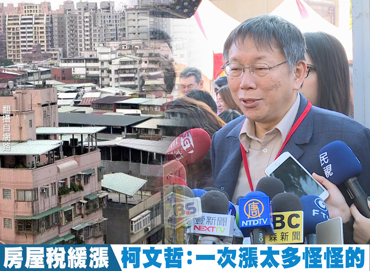 【新唐人亞太台 2016 年 12 月 17 日訊】對於台北市不動產評價委員會,昨天拍板房屋稅調整方向,台北市長柯文哲在今天受訪時說,房屋稅應該要緩漲,一次漲太多還是怪怪的。