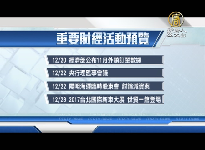 【新唐人亞太台 2016 年 12 月 18 日訊】帶您看到下週,有哪些重要的財經活動。