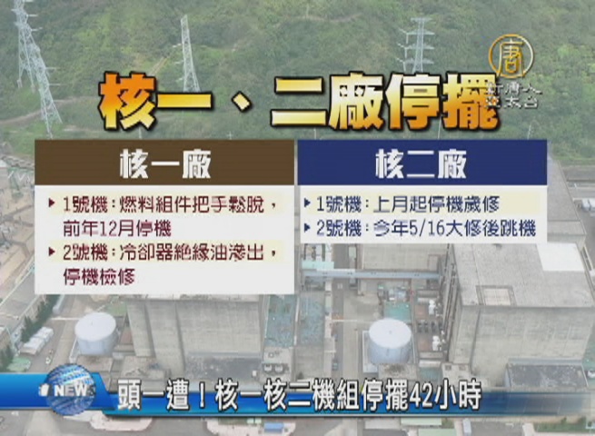 北台灣2座核能發電廠,核一、核二近年來意外頻傳,12月15日又出傳核一廠的2號機,輔助變壓器的絕緣油滲漏,因此停機檢修,也等於核一、核二4部核電機組,短暫停擺約42小時。