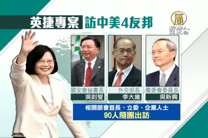 【新唐人亞太台 2016 年 12 月 20 日訊】總統蔡英文,確定明年一月7號要出訪中美洲,參加尼加拉瓜總統就職典禮,這次出訪定名為「英捷專案」,要在9天內訪問4友邦,行程非常緊湊,不過被問到是否過境美國,總統府僅表示,過境地點還在協調中,要等到下周 才能對外說明。