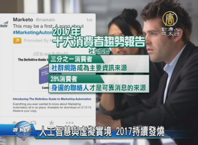【新唐人亞太台 2016 年 12 月 20 日訊】智慧科技的發展,使人的生活與科技更密不可分。國際網通大廠發表了2017 年十大消費者趨勢,表示消費者對於人工智慧與虛擬實境的喜愛與依賴,逐步增加。
