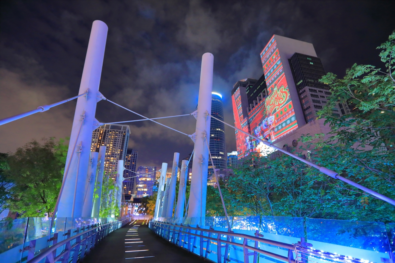 如果你想暫時遠離一下喧囂,連結公車轉運站至板橋車站天橋是個絕佳的選擇,在空橋上可以一覽整個市民廣場的燈飾,市府大樓主燈秀搭配周邊燈海,形成最璀璨的景致!市府大樓的光雕也因為視角的變化而顯得更加有立體感跟層次,最重要的還是可以跟親密的朋友獨享這片刻的浪漫,取景都不會擔心拍到路人喔,是小編極推薦的私房景點之一。