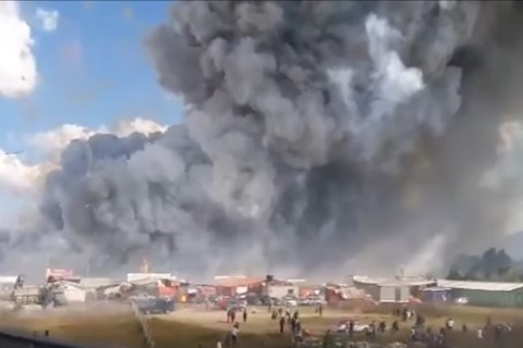 【新唐人亞太台 2016 年 12 月 21 日訊】墨西哥北方小鎮圖爾特佩克(Tultepec)的聖帕伯利托(San Pablito)有一個逾300個攤檔的煙火市場發生大爆炸,當地時間周二下午約3時,發生至少6次爆炸,大量炭黑色濃煙密佈上空,爆炸聲巨大,鄰近城鎮都能聽到,目前傳出最少造成27死,受傷人數無法正確估計,大批救援人員及墨西哥軍隊趕至拯救傷者以及疏散市民。