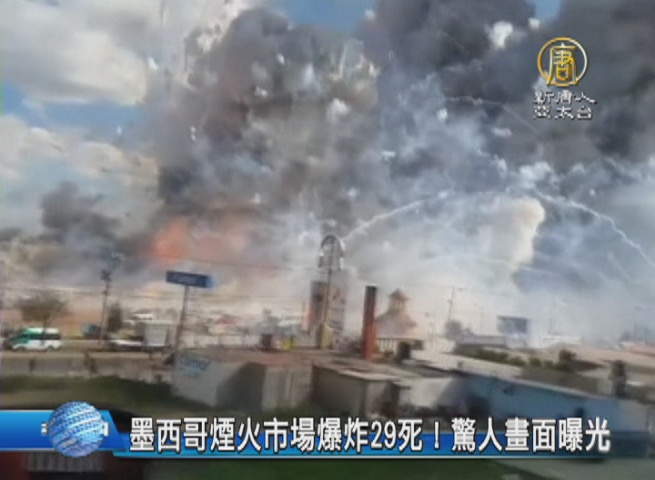 【新唐人亞太台 2016 年 12 月 21 日訊】國際消息來看到,墨西哥首都墨西哥市郊區1處煙火市場,今天發生爆炸,透過畫面您看到,滿天煙火連環四射與大量濃煙,已經造成29死、70傷,天空佈滿有如火山爆發的深灰色濃煙。當地民眾多以製造爆竹為業,有關單位多年來一直試圖規範。當地2005年也發生過類似事件,造成數百個攤位,毀於一旦。