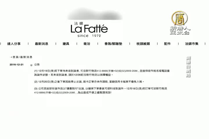 【新唐人亞太台 2016 年 12 月 22 日訊】好,就在官方公布失業率下降的同時;擁有44年歷史,台灣第一家進駐百貨專櫃的寢具品牌法蝶,驚傳年底歇業,昨天員工收到通知,表市公司將在12月底結束營業。媒體報導,這分內部流出的資料,有執行長蔡柏廷親自署名,表示因財務問題須全部結束;員工也將在一週後,面臨失業。