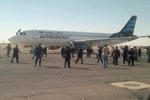 利比亞國內航班一架客機今天遭劫機,兩名劫機者威脅要炸毀飛機,目前該班轉降馬爾他。(圖/截取自twitter.com/AfriqiyahAAW)